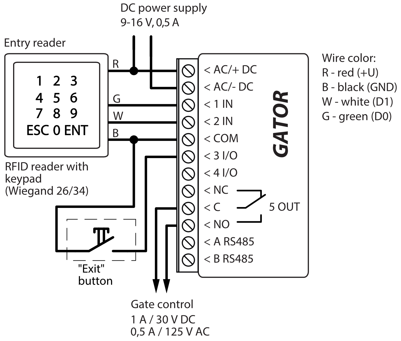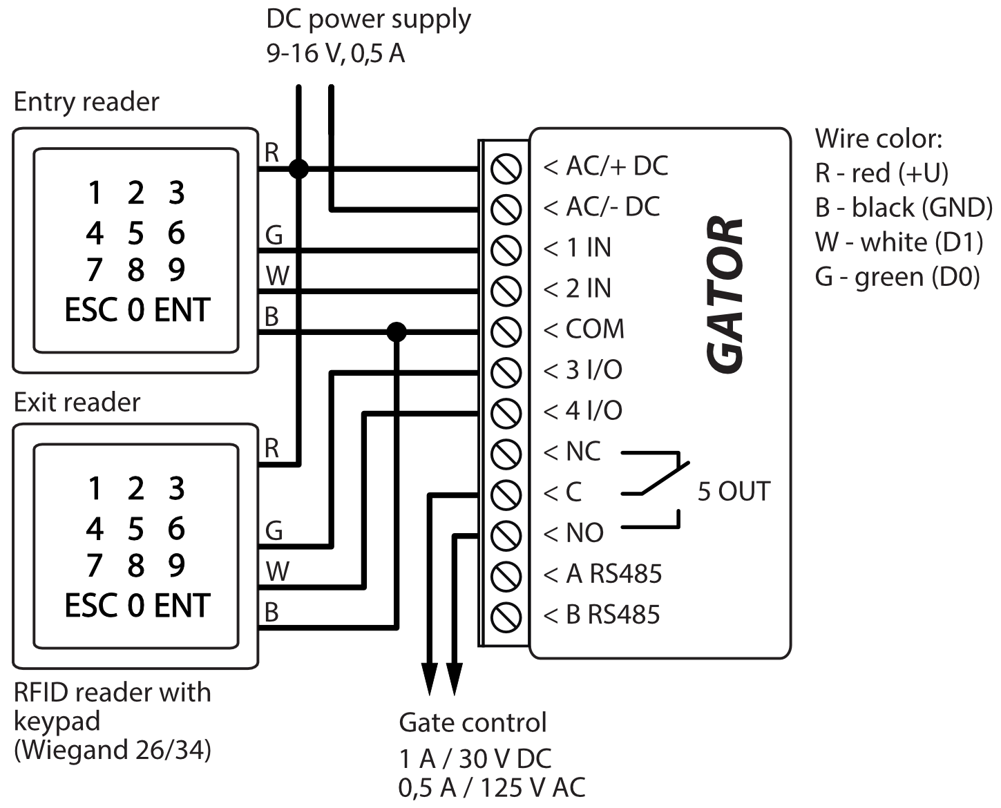 - The system handles a maximum of 2 Wiegand readers.